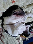 昨日の滋悟郎君。夜には一度引いていた左目の腫れが今度は下まぶたに出る。